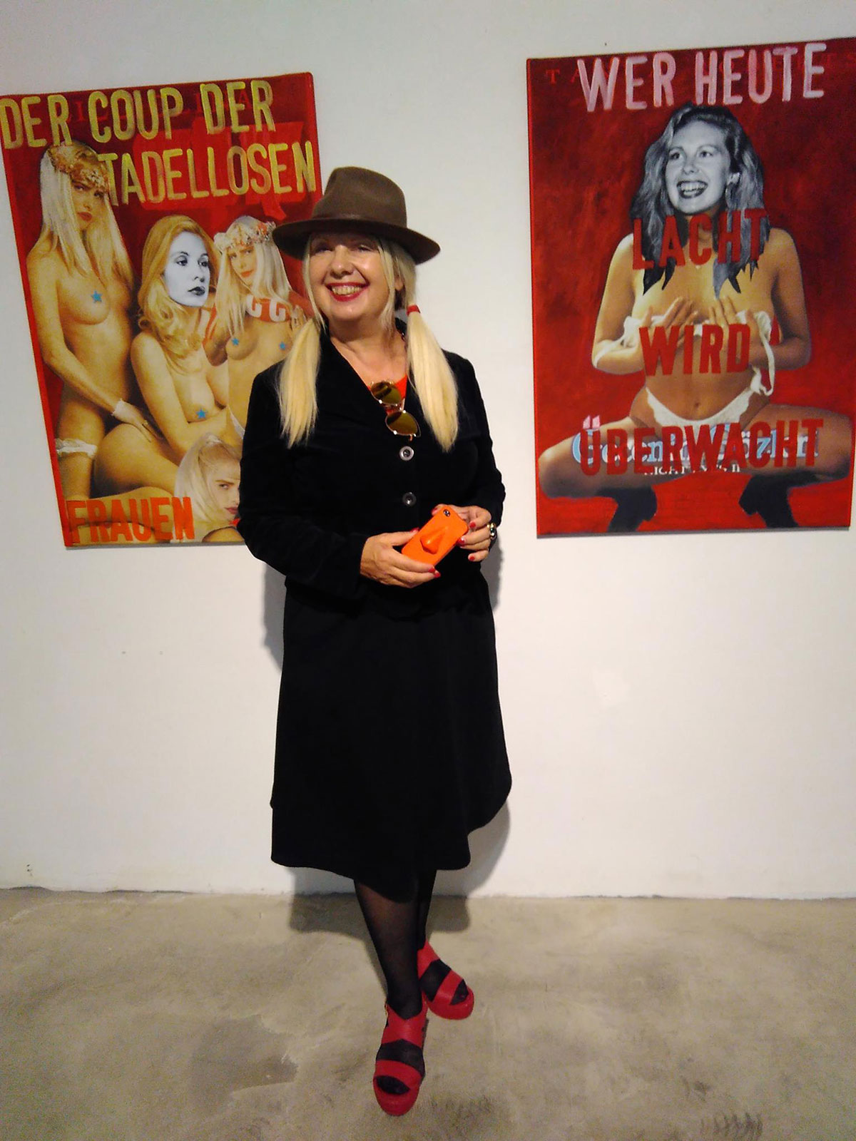 Von „Turkish Delights“ über „Wagner Extase“ zu „Der Coup der tadellosen Frauen zum Tag der Arbeit“ – Politisch motivierte Kunst von ONA B. (2010–2024) In diesen Serien bearbeitet ONA B. politische Machtverhältnisse, Frauenrollen und Populärkultur. Kinowerbung aus den 1980ern wird durch Übermalung und sprachliche Verrückung aktuell konnotiert und reflektiert die international spürbare Gefährdung der Demokratie.
