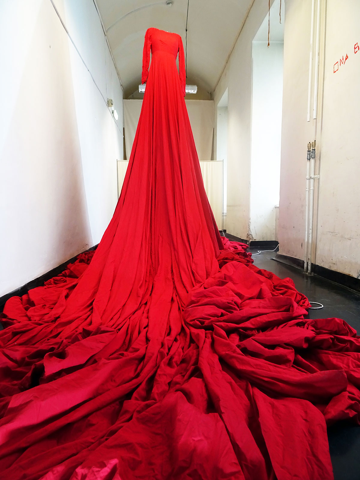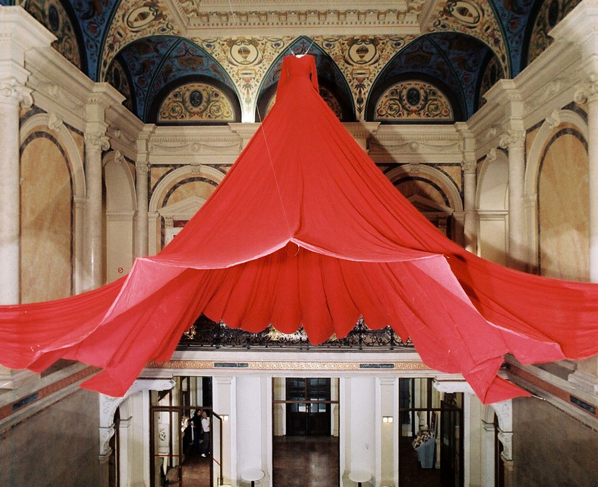 1989 setzte in Prag die „samtene Revolution“ dem Besatzungszustand, in dem sich die damalige Tschechoslowakei (ČSSR) seit 1945 durch die Rote Armee der Sowjetunion und der kommunistischen Staaten des Warschauer Paktes befand, ein Ende. Demokratie wurde die neue Staatsform. Die Armeelager wurden aufgelöst und ONA B. konnte den Fahnenstoff, aus dem die kommunistischen Fahnen der Sowjetunion genäht waren, erwerben und daraus die Installation „Dressed to Kill – Velvet Revolution" schaffen: ein überdimensional großes Kleid, genäht aus 130m blutrotem Fahnen-stoff. Das Werk steht für Widerstand, Poesie und weibliche Kraft.