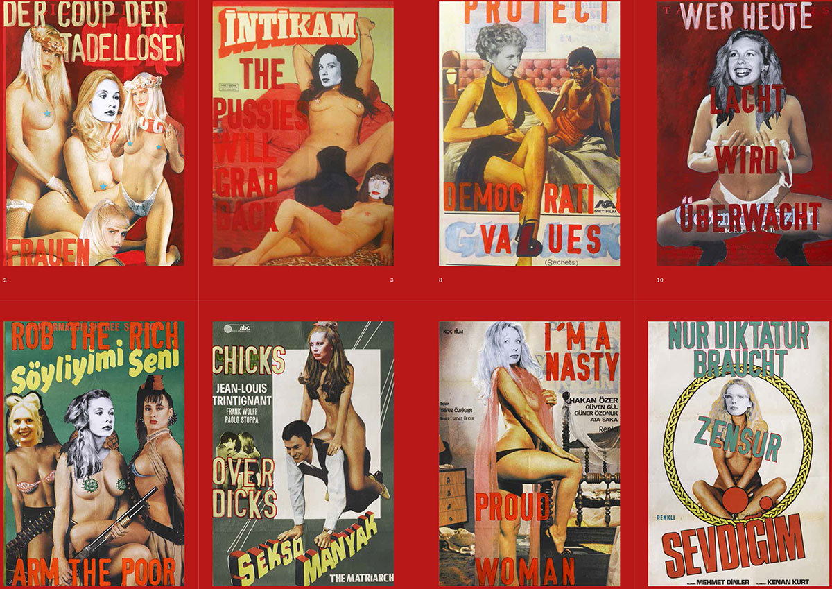 Von „Turkish Delights“ über „Wagner Extase“ zu „Der Coup der tadellosen Frauen zum Tag der Arbeit“ – Politisch motivierte Kunst von ONA B. (2010–2024) In diesen Serien bearbeitet ONA B. politische Machtverhältnisse, Frauenrollen und Populärkultur. Kinowerbung aus den 1980ern wird durch Übermalung und sprachliche Verrückung aktuell konnotiert und reflektiert die international spürbare Gefährdung der Demokratie.