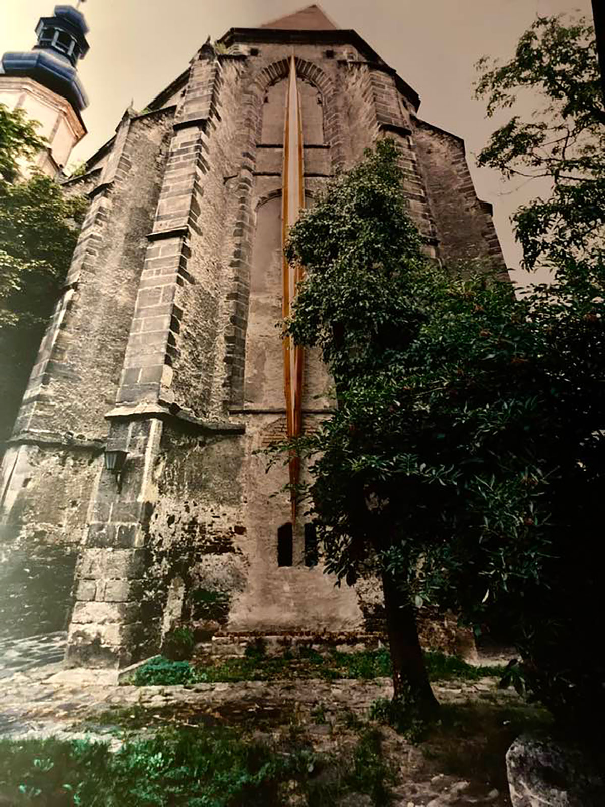 1996 KREMS – Minoritenkirche Krems / Stein, östliche Außenmauer - Permanente Installation im Auftrag der Kunsthalle Krems, Kurator: Wolfgang Denk „NIGREDO” – AUT